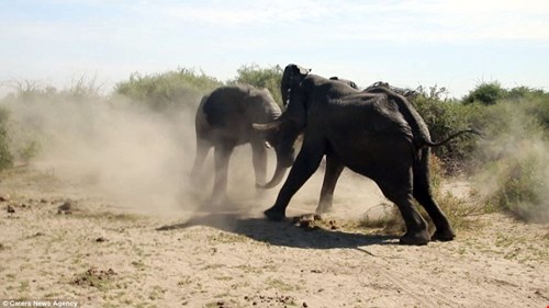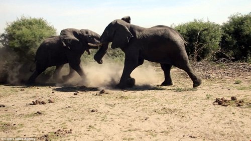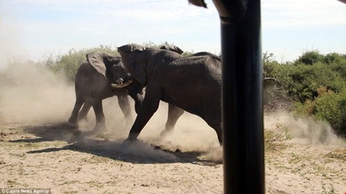 Cuộc chiến ác liệt của cặp voi được nhiếp ảnh gia người Mỹ Kathryn Bakken ghi lại trong chuyến du lịch tới Botswana.